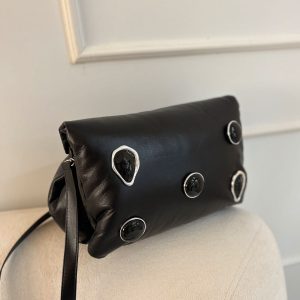 Bolsa Carolina Couro Confort Preta com Pedras