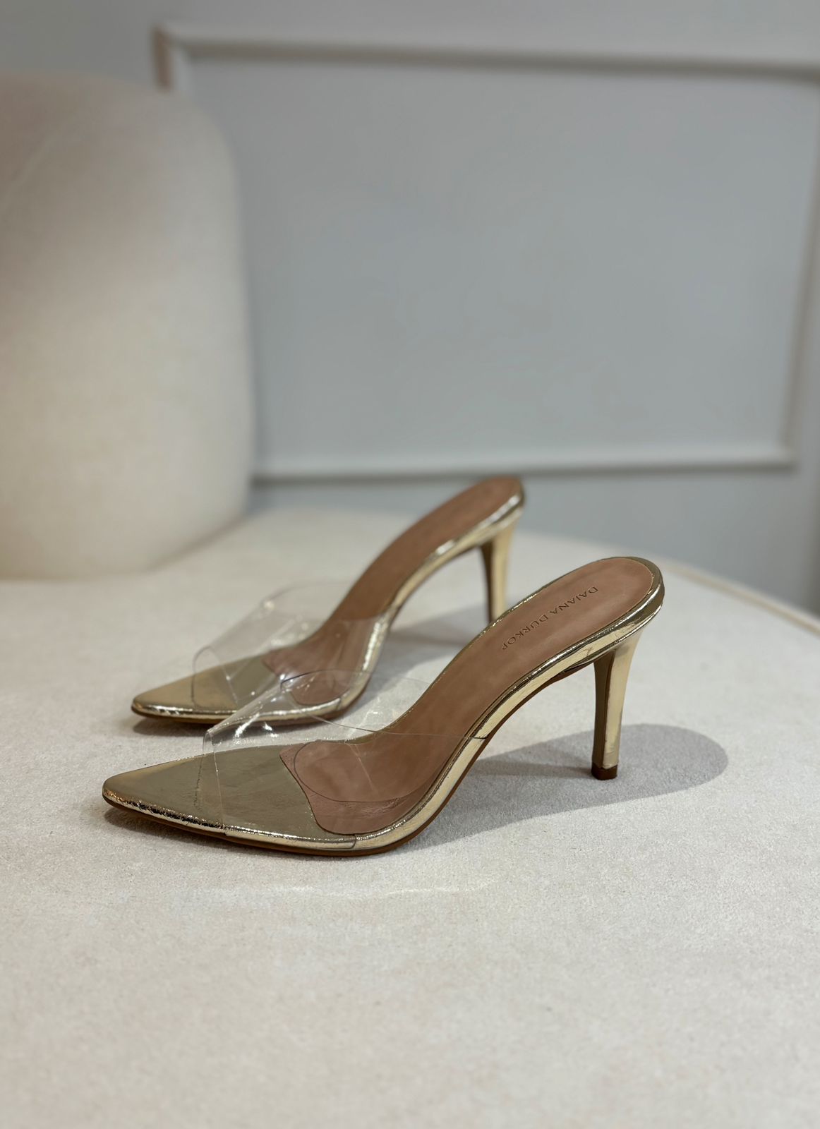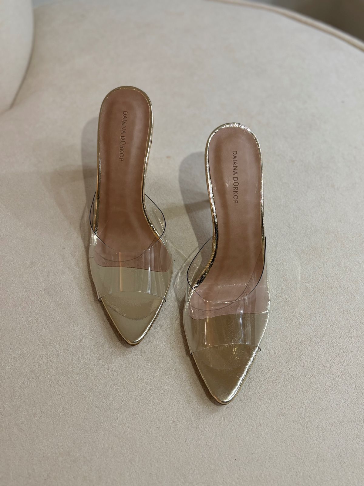 Tamanco Dourado fabricado em material couro, com salto salto e bico folha. Traz todo charme e elegância para a mulher.