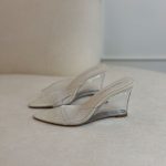 Tamanco off white, com salto acrílico e bico folha. Traz todo charme e elegância para a mulher.